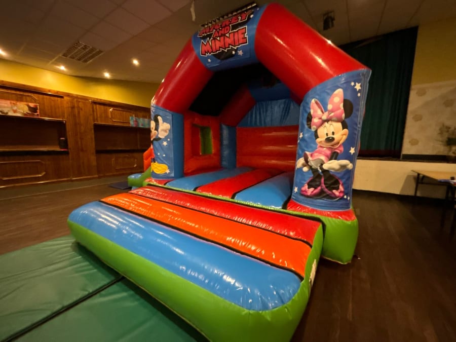 Midlands Inflatables love helping your little ones dreams come true which is why our 18x12ft Mickey and Minnie DISCO Bounce and Slide Combi is the perfect choice for the ultimate party in one! With the bouncing and sliding fun mixed with the speaker your little one can listen to their favourite music all whilst bouncing alongside the two most famous mice! The bright colours and artwork are beautiful and the perfect way to make your little ones eyes light up with excitement.