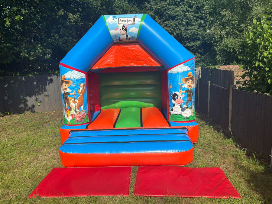 If your little one loves everything about farming, from the animals to the tractors then our Farm Yard DISCO Bouncy Castle is the perfect choice for you! This castle has been designed so it should fit in most gardens to allow all of our little customers experience the fun! The bright colours and the beautiful farm yard artwork of Farmer Joe and his animals such as his Horse and Cow is a great way to bring a smile to their faces. This castle comes with a speaker so your little one can listen to their favourite music whilst they bounce into the farming fun!