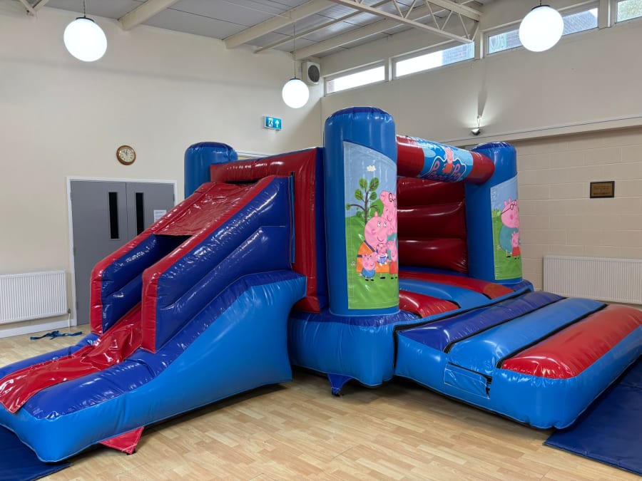 Does your little one love Peppa Pig and her friends then our 18x14ft Low Height Peppa Pig Bounce and Slide Combi is the perfect choice for your little ones Peppa Pig themed party. This castle has the added feature of a slide so your little one can bounce in to the fun with Peppa and slide into the adventures with Suzy! The bright colours and the beautiful artwork showcasing Peppa and all her friends and family is a must have for your party. This castle is approximately 8ft tall making it perfect to fit in most low height venues!