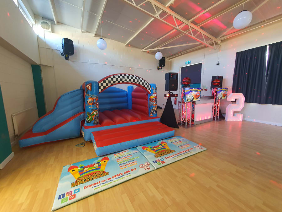 We know the struggles and stress of finding a venue across Birmingham and Coventry with a ceiling big enough to hold a Bouncy Castle. Well, we have taken the stress away. Our Cars themed Bouncy Castle Combo stands proud at approximately 2.2m. Should you struggle to find a venue locally why not get in touch with us and we will help you find the perfect venue from our experience of hosting parties.