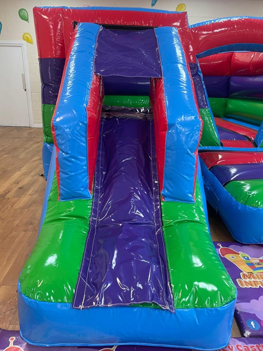 Our Indoor Multi Coloured Slide 12x18ft is the perfect addition to your Rainbow Theme Parties. With the bright colours and the unique design this is a sure way to ensure everyone is having a fabulous time. This castle was designed for low-ceiling height venues so everyone can enjoy the added extra of a slide to enjoy at their party. This is one of our most popular Bouncy Castles as it is perfect for all venues and events. Please Contact us if you are unsure if this castle is suitable for your venue.