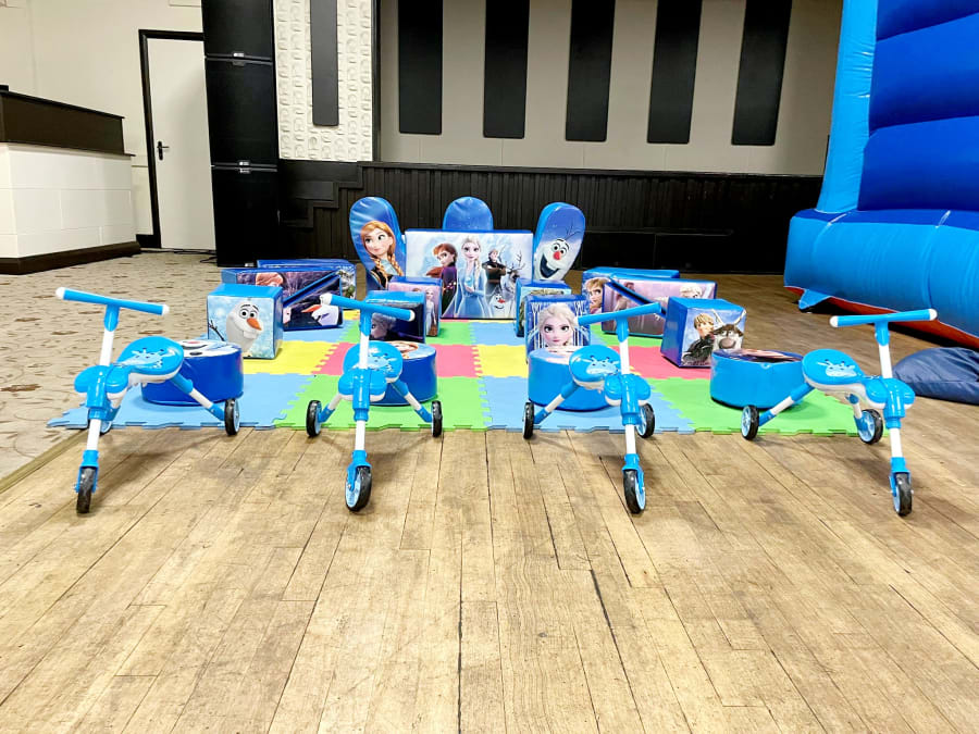 Our Soft Play is the perfect way to allow your little ones to create their very own Arendelle Kingdom to play in with their friends. With this 18-piece Frozen Soft Play they can build their kingdom, use the rocker as their boat to travel the icy seas, use the Frozen Ball pit to splash into their adventures or use the didi bikes as horses to gallop round their kingdom! The options are endless and will bring hours of fun for your little ones! You can even add our matching Frozen Castle 12x17ft to the party so they can have bouncing a sliding fun added to the party too! Or why not have a disco version with our Frozen DISCO Castle 12x17ft!