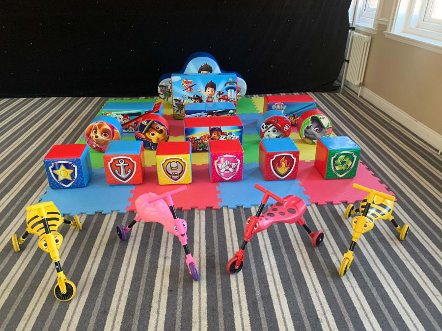Our Soft Play has been designed to allow children of all ages enjoy the party. Being the perfect choice for babies and toddlers, we know you want to make sure your pups are kept safe at all time. With our soft safety mats provided and 360 degree access to all soft play we know parents can be confident their children are having fun! If you have older pups why not hire our Paw Patrol Bouncy Castle 12x12ft which is pawfect for older pups to have fun too! We can even provide the ultimate Paw Patrol Party with our Video DJ and your pup even gets a personalised graphic to ensure they know how special they are!
