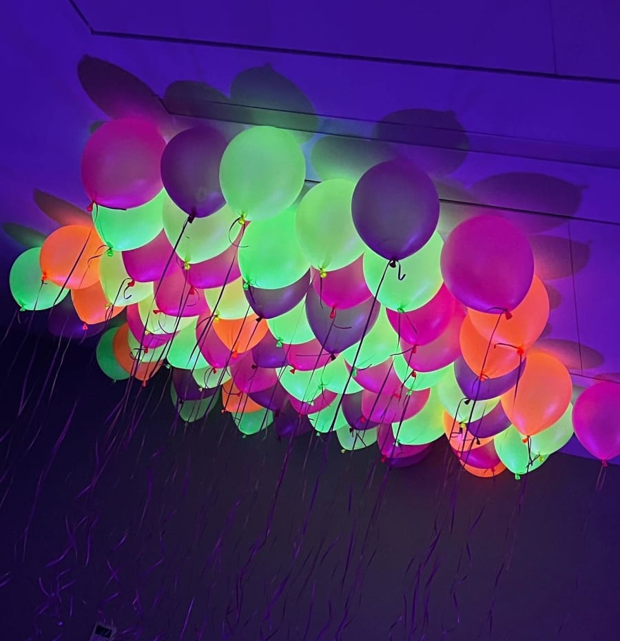 Our UV helium balloons will give your party the wow factor and we promise that your venue will look epic giving off the glow made famous by the UV lights!