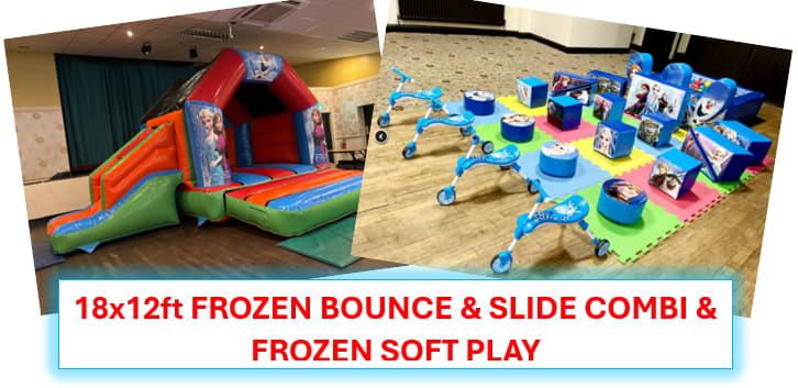 Elsa and Ana are inviting you to the ultimate frozen extravaganza with this amazing package. Combining the bouncing fun of our 18x12ft Frozen Bounce & Slide Combi with our Frozen Soft Play this is a sure way in ensuring everyone is having a fantastic time. With the bright colours and matching artwork we know your little ones will be in awe of this amazing package at their party.