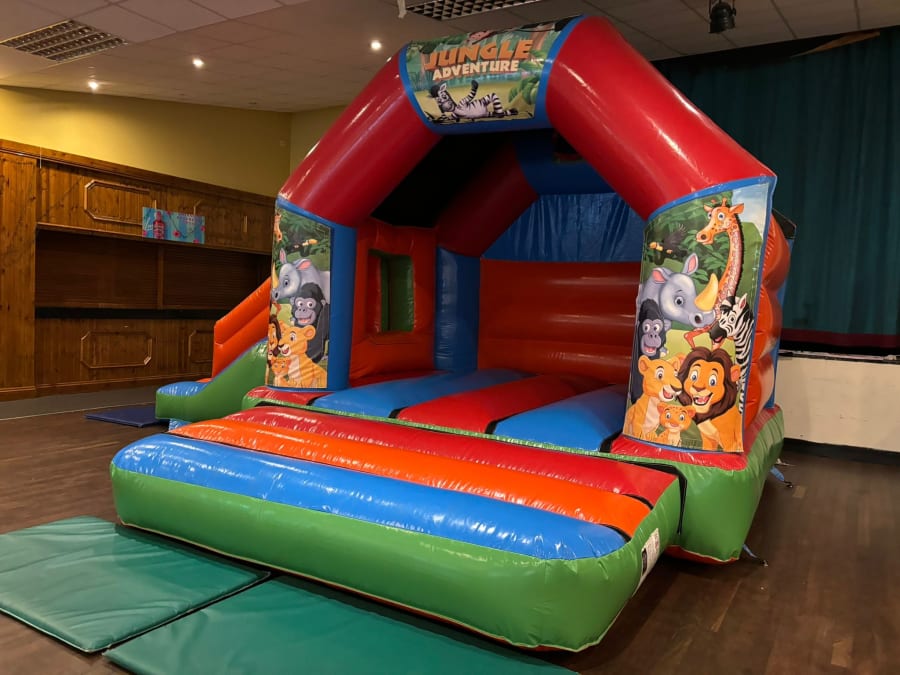 Midlands Inflatables love helping bring your little ones dreams become a reality. Our 18x12ft Jungle Bounce & Slide Combi is the perfect addition to your party. With the open style castle allowing parents to keep an eye on things and the kids having all that space to bounce around as well as the added extra of the slide this is a must have for your Jungle Themed Parties. The beautiful artwork showcases some of your little one's favourite jungle animals and we know they will love this for their party!
