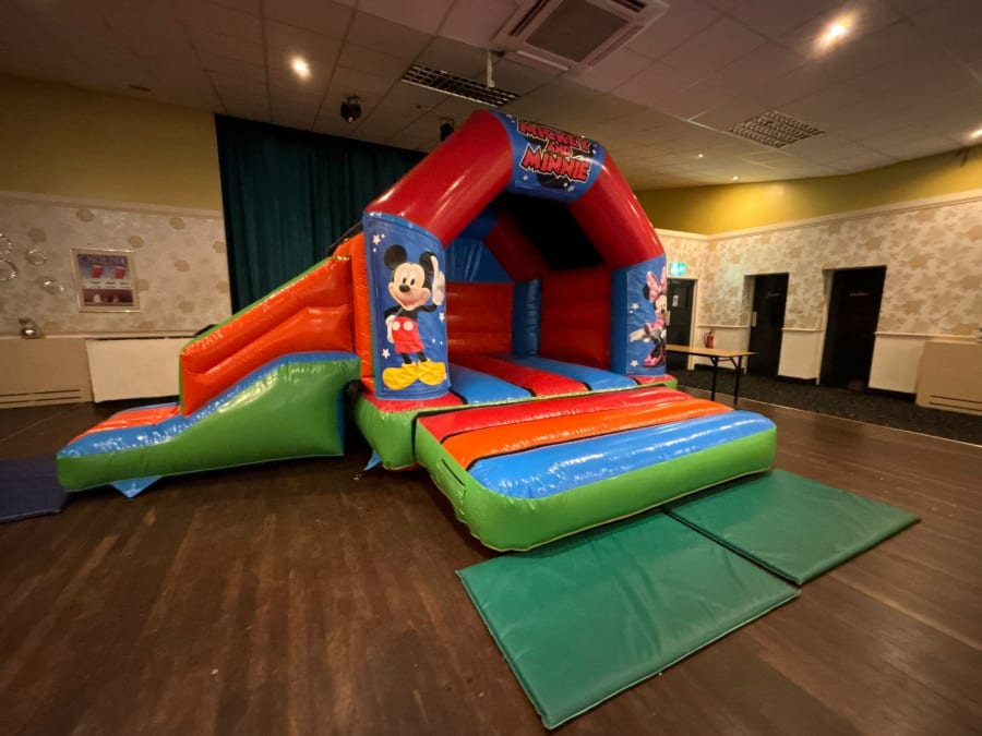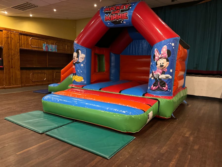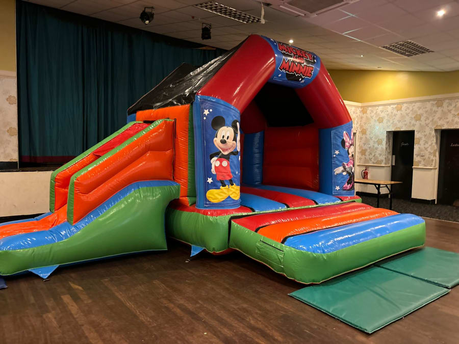 Midlands Inflatables love helping your little ones dreams come true which is why our 18x12ft Mickey and Minnie DISCO Bounce and Slide Combi is the perfect choice for the ultimate party in one! With the bouncing and sliding fun mixed with the speaker your little one can listen to their favourite music all whilst bouncing alongside the two most famous mice! The bright colours and artwork are beautiful and the perfect way to make your little ones eyes light up with excitement.