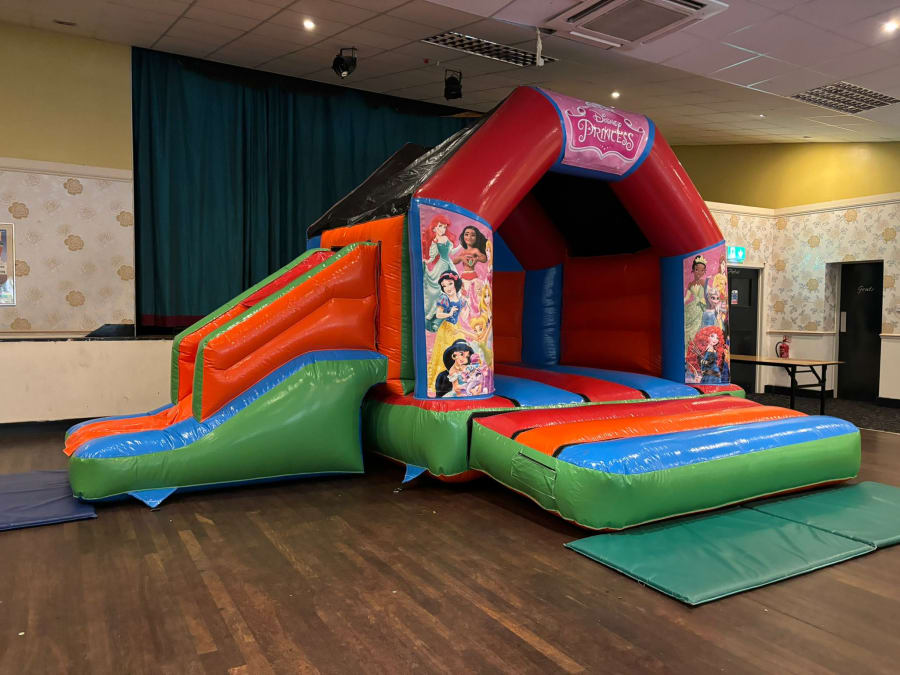 Midlands Inflatables always want to help make your little ones party more unique for them in any way we can and our 18x12ft Princess DISCO Bounce and Slide Combi is the perfect addition to your party. Not only can they bounce and slide into the fun but with the added feature of a Bluetooth speaker they can also listen to their favourite music too! The beautiful colours and artwork of this castle will make your little ones eyes light up with excitement.