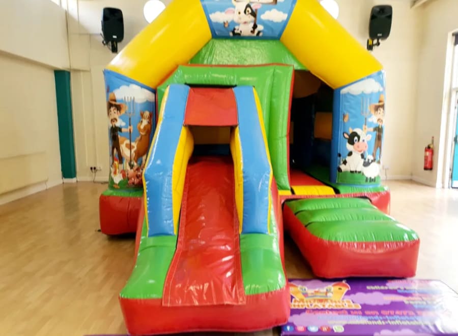 Our Farm Yard Bounce & Slide Combi 12x17ft is a popular choice with our little Farmers in Tamworth and Solihull. We recommend our customers book early to avoid any disappointment. Our online booking system is an easy way to book with us allowing you to check if we cover your area and have availability on your chosen date. If you do have any questions, you can Contact us and we will be more than happy to help!