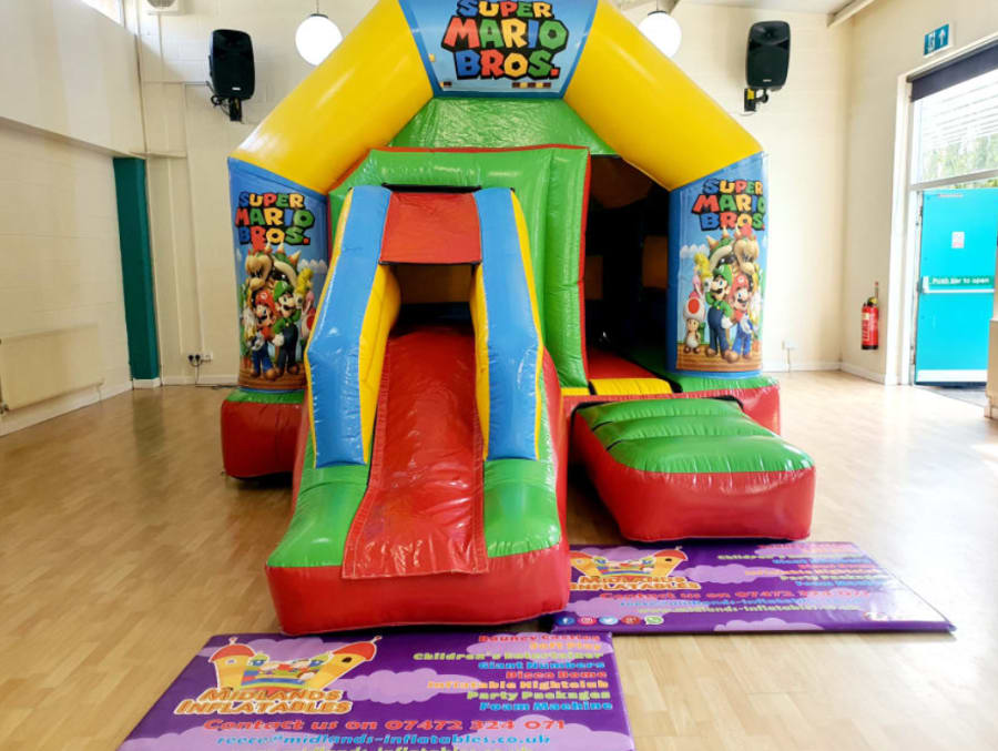 Why not add even more fun to your party with our Mario Brothers Disco Bounce & Slide Combi. combining the bouncing with dancing and music this is a fun extra for your little ones. Or if you have an indoor venue why not give your little ones the Ultimate Mario Brothers Party with combining this awesome castle with our Childrens Entertainer who not only entertains your little ones but is also the Video DJ with two 40-inch televisions showcasing all of their favourite music videos as well as a personalised graphic just for them!