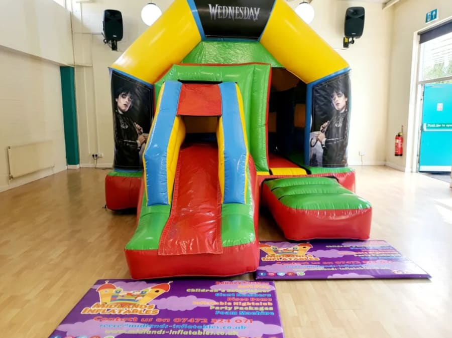 Our Wednesday Addams Bounce and Slide Combi is a popular choice amongst our young customers in Tamworth and Sutton Coldfieldwho love this iconic family as much as we do. We recommend you book early to avoid disappointment. You can use our online booking system to see if we have availability on your chosen date as well ensuring we cover your area. If you have any queries you can Contact us and our friendly team will be more than happy to help.