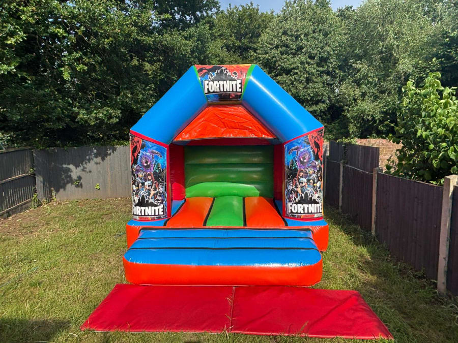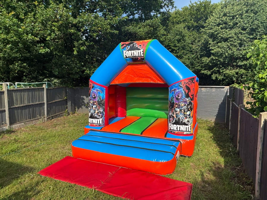 Midlands Inflatables know your little ones are well known gamers which is why our Fortnite DISCO Bouncy Castle is the perfect choice for their party! With their favourite character they play on the game displayed on the bouncy castle this is a great way for your little games to live their best gaming life alongside bouncing into the fun with their friends, This castle comes with a speaker too so your little one can bounce into the action listening to their favourite music too!