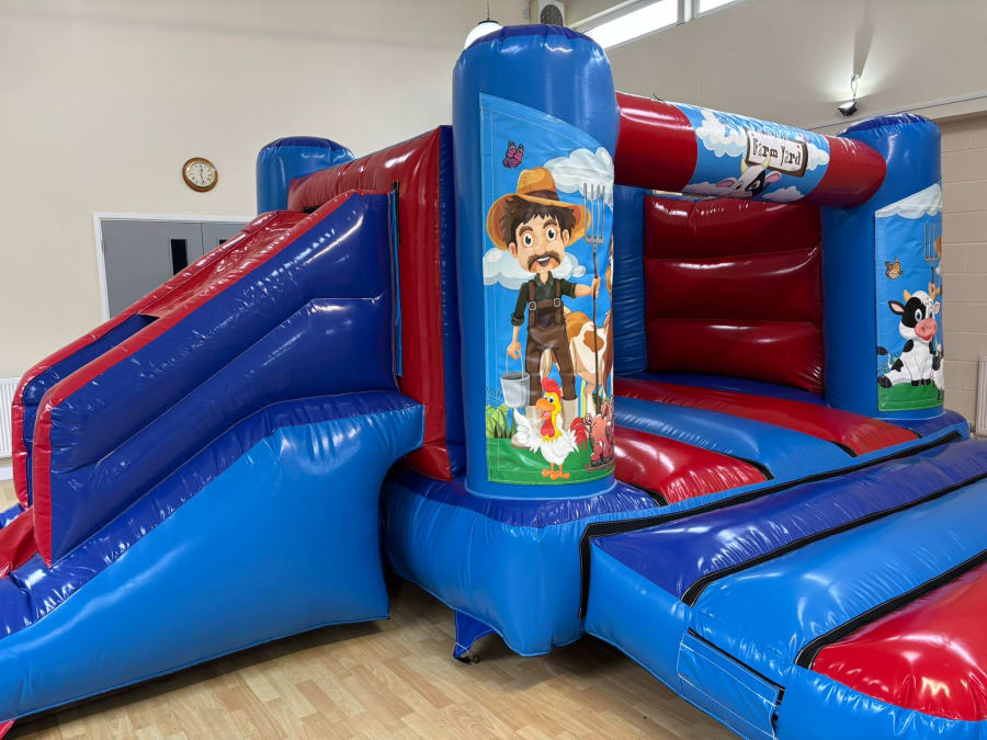 Does your little one love everything to do with farming? From the animals to the tractors? Then our 18x14ft Low Height Farm Yard Bounce & Slide Combi is the number one choice for you. Your little ones will love the bouncing into the farm experience and sliding into the tractor fun all whilst having Farmer Joe and his far yard animals there for the ride. This castle has been designed to fit in low ceiling height venues so no matter where your hosting your little ones party they will be guaranteed to have a farming experience they will never forget.