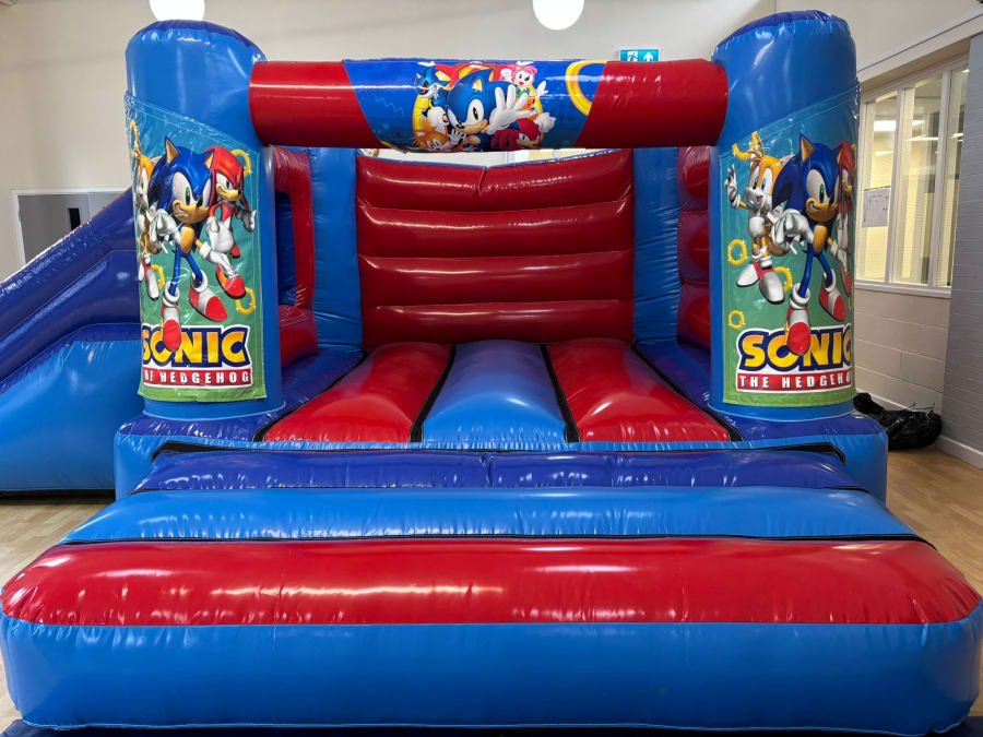Sonic and Tails have been two much loved characters for many years and we know your little ones love them as much as we do which is why when your little one wants a Sonic Themed Party our 18x14ft Low Height Sonic Bounce and Slide Combi is the perfect choice for you. With the bright red and blue colours showcasing the awesome artwork of not only Sonic but also Tails too this is a must have for an Sonic fan! Add in the bouncing into the fun and sliding to get the rings the options for fun are endless. This castle is approximately 8ft tall and is designed to fit in low height venues to ensure everyone can have a blast no matter the venue!
