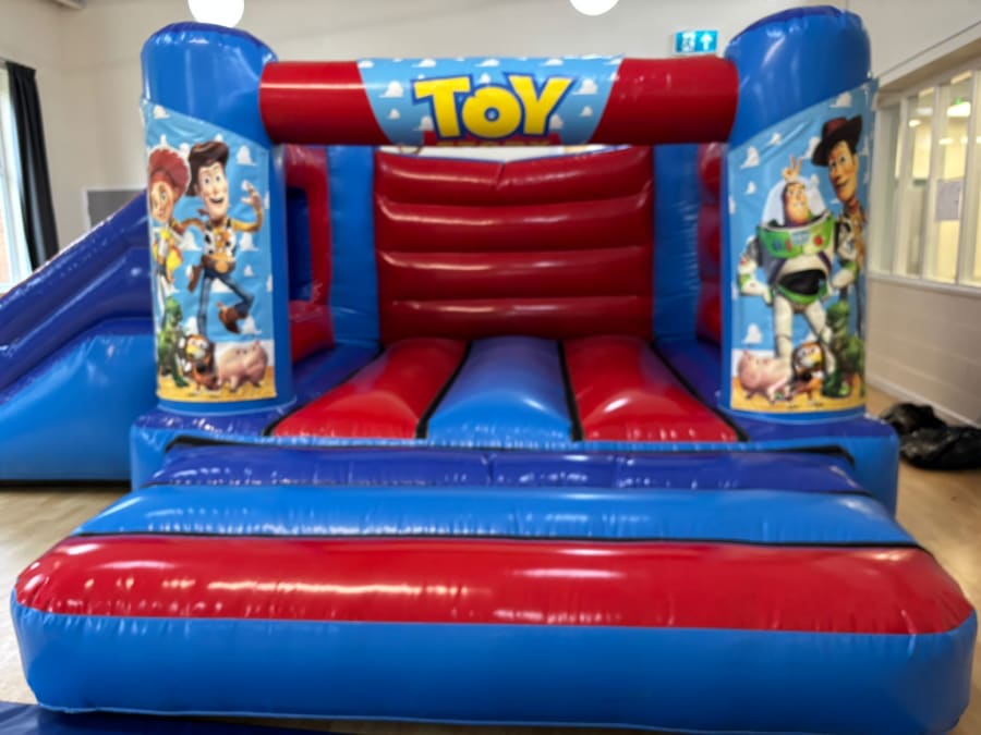 Toy Story has and always will be an iconic film which is why when your little one says they want a Toy Story themed party you want to make sure it is everything they have ever dreamed of. Our 18x14ft Low Height Toy Story Bounce and Slide Combi is the perfect addition to your party. The bright colours and the awesome artwork of Buzz Lightyear, Woody and all their friends is a perfect way to bring the toys to life right before your little ones eyes. They can bounce into the fun and slide into the adventures for hours of endless fun! This castle is approximately 8ft tall meaning it can fit in low height venues ensuring everyone can have fun no matter where their party is being held.