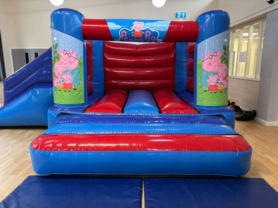Does your little one love Peppa Pig and her friends then our 18x14ft Low Height Peppa Pig Bounce and Slide Combi is the perfect choice for your little ones Peppa Pig themed party. This castle has the added feature of a slide so your little one can bounce in to the fun with Peppa and slide into the adventures with Suzy! The bright colours and the beautiful artwork showcasing Peppa and all her friends and family is a must have for your party. This castle is approximately 8ft tall making it perfect to fit in most low height venues!