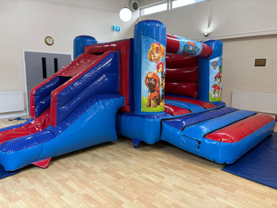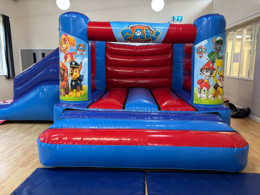 It is time to let Chase and his team of pups save the day but they need your little one to help them in their mission. Our 18x14ft Low Height Paw Patrol Bounce and Slide Combi is the perfect choice for your Paw Patrol Themed Parties. The bright red and blue is the perfect choice for the beautiful artwork of Chase, Skye, Ryder and the team to sit front and centre. With the added extra of the slide on the side your little one can bounce into the fun and slide into the adventures alongside their favourite pup! This castle is approximately 8ft tall and is designed to fit in most low height venues.