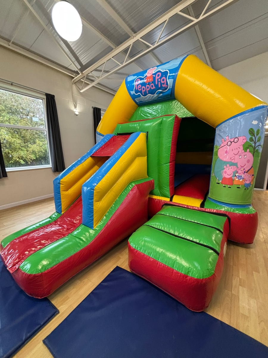 Your little Peppa Pig lovers will adore our amazing Peppa Pig Bounce & Slide Combi 12x17ft! Whether their favourite character is Peppa herself or one of her friends the beautiful artwork showcases everyone from this amazing program. The bright colours of the castle will help bring smiles to your little ones faces and add in the extra of the slide on the front we know they will be bouncing and sliding into the adventures alongside Peppa in no time.