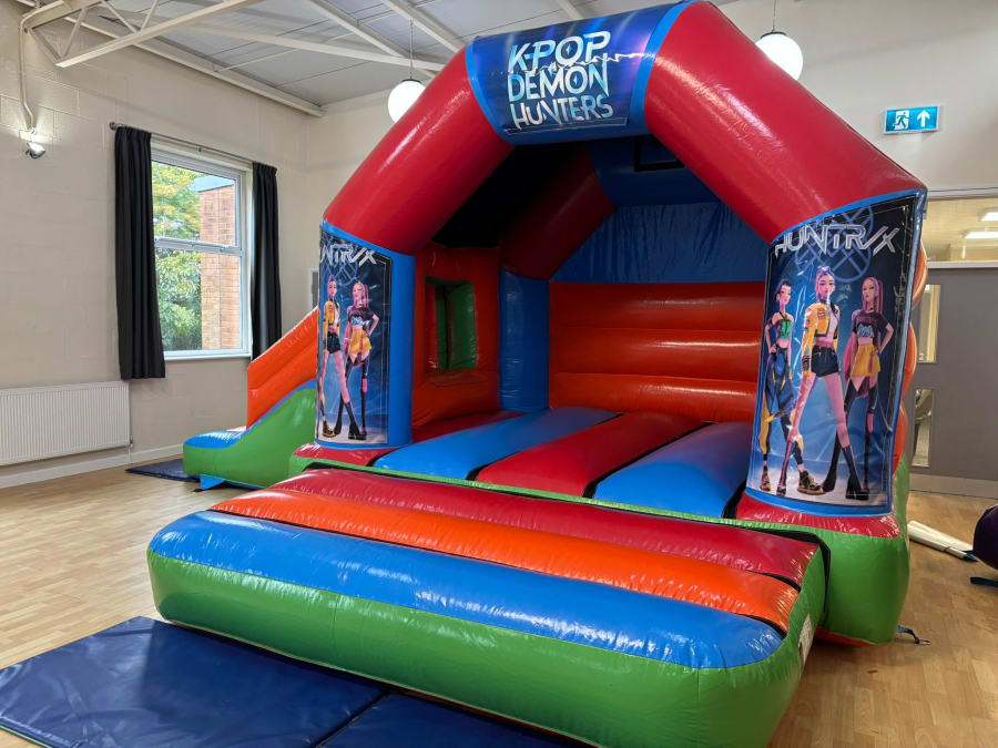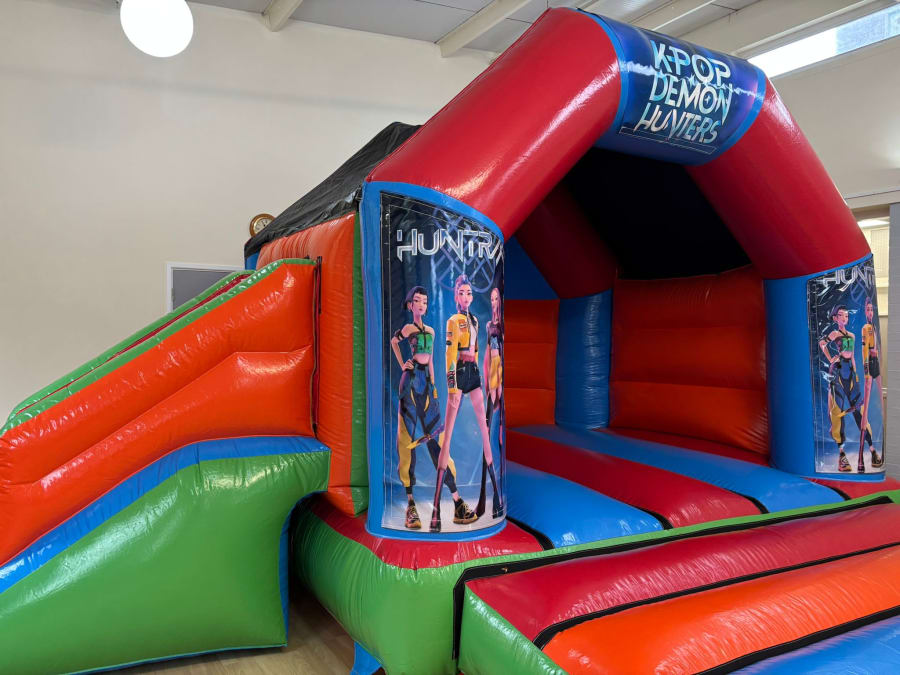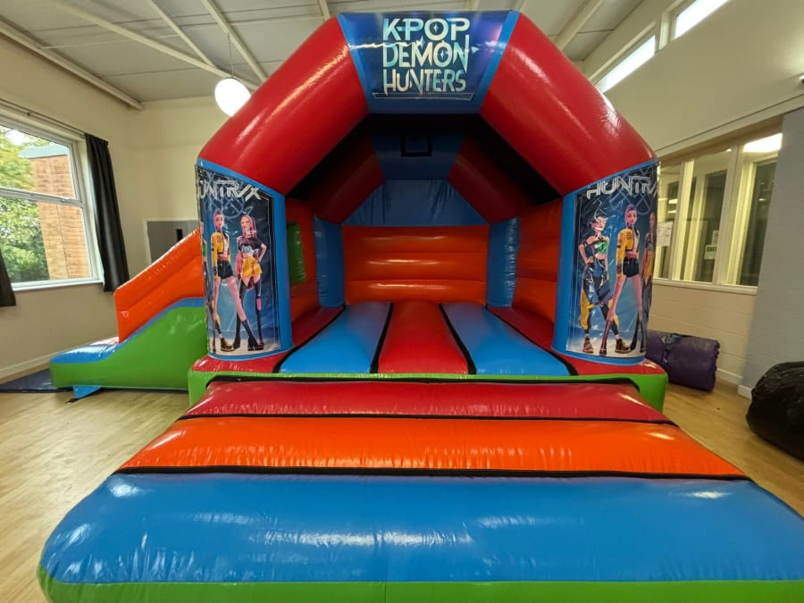 Does your little one love K-Pop Demon Hunters? Then Midlands Inflatables have the perfect bouncy castle to bring Rumi, Mira and Zoey to life at their party with our 18x12ft K-Pop Demon Hunters Bounce and Slide Combi! This castle not only has the bouncing sorted but also the slide action too! The bright colours and the amazing artwork of the main characters is a sure way to make your little ones feel they are performing right next to the K-Pop Demon Hunters whether it be ata sold out stadium or defending against super natural threats!