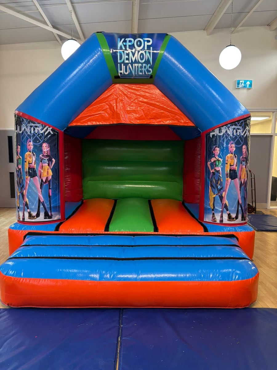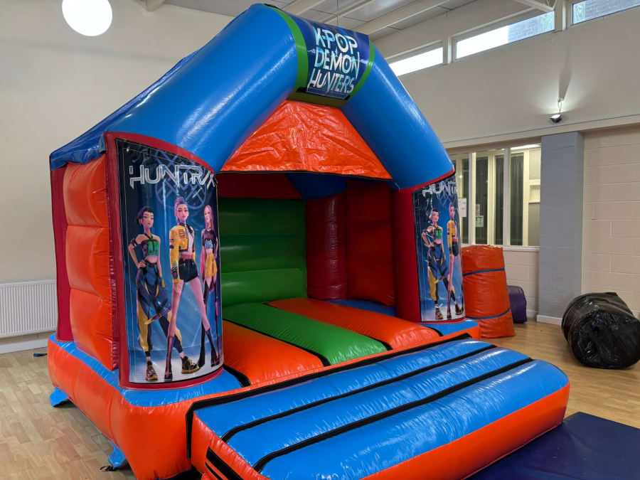 Do you have a venue that is not massive or a garden that is not huge but your little one loves K-Pop Demon Hunters? Then our K-Pop Demon Hunters DISCO Bouncy Castle 10x10ft is the perfect choice to bring the entertainment to your little ones party. This castle is small enough to fit in a small garden but mighty enough so everyone can have fun. Bringing Rumi, Mira and Zoey to life for your little ones is essential and this castle ticks all the boxes. With the bright colours and the beautiful artwork of the three ladies in question this is a must have for any Demon Hunter fan. With the added extra of a Bluetooth speaker to sit outside of the castle your little ones can bounce into the adventures of protecting the world from super natural threats all whilst listening to their favourite music.