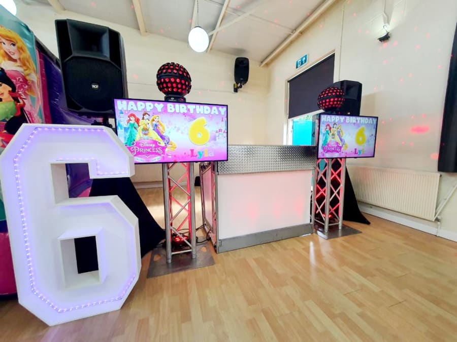 Midlands Inflatables want to give your little ones the royal treatment at their party which is why our Kids Disco Princess is the perfect choice to make them feel glamourous on their special day. Our Children’s Entertainer will keep all of your guests entertained with up to 10 games to get the party started. Not only that but with our two 40-inch televisions showcasing their favourite music videos and a personalised princess themed graphic this is a sure way to make them feel like the belle of the ball.