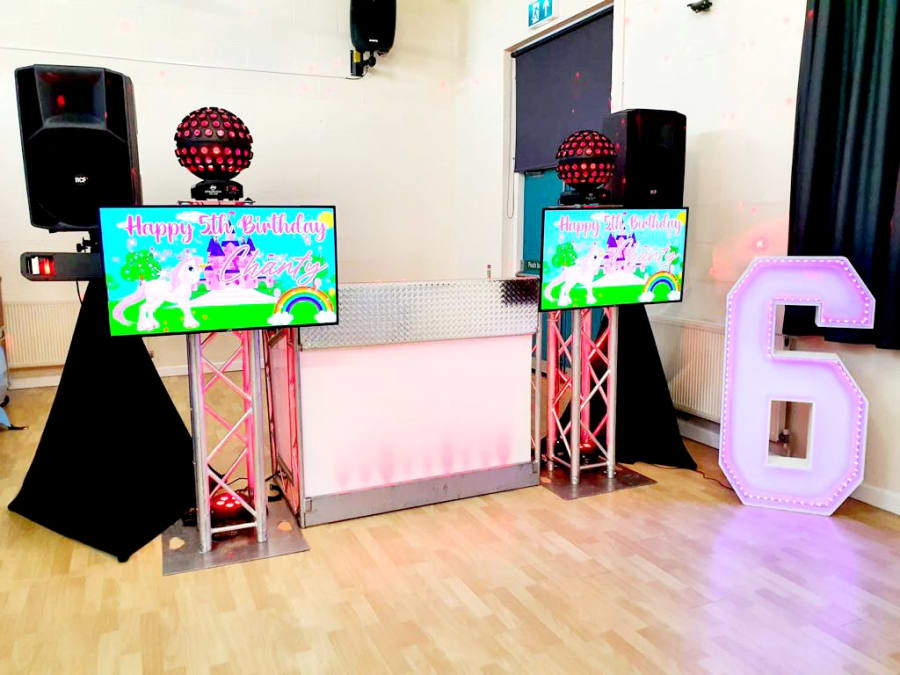 Midlands Inflatables want to help make your little one’s dreams become a reality and there is no better way than bringing unicorns to life at their party. Our Kids Disco Unicorn is the perfect choice to bring the music and games to your event to make your little one’s eyes light up with wonder. Our Children’s Entertainer will not only play your little one’s favourite music but also play up to 10 games with your little one and their friends. Our two 40-inch televisions will bring the wow factor to your event as they showcase your little one’s favourite music videos and a personalised graphic featuring their favourite mythical creatures, Unicorns.
